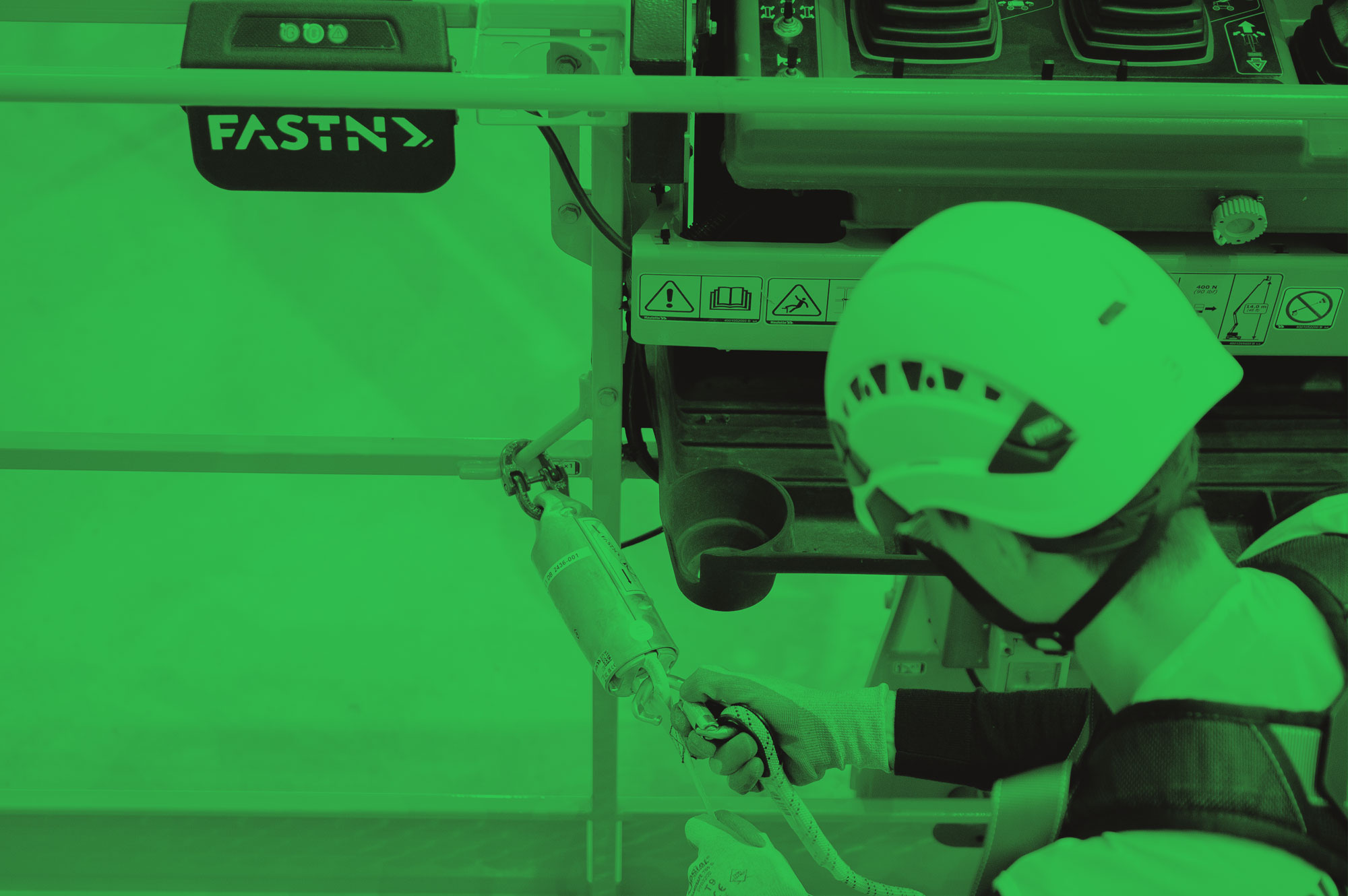 当作业人员已经连接固定至 FASTN 系统且系 统检测出异常压力时,系统会立刻向工地发出 警报,提醒作业人员可能发生坠落或脱离。